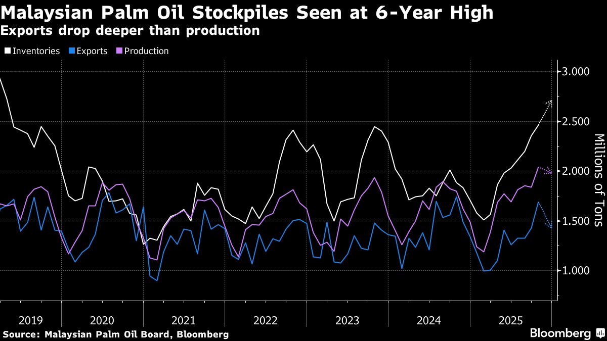 Realisasi tersebut lebih tinggi ketimbang ekspektasi pasar. Konsensus yang dihimpun Bloomberg dengan melibatkan 11 responden menghasilkan median proyeksi stok minyak sawit Malaysia per akhir November sebanyak 2,71 juta metrik ton, Ini pun masih menjadi yang tertinggi sejak Maret 2019.