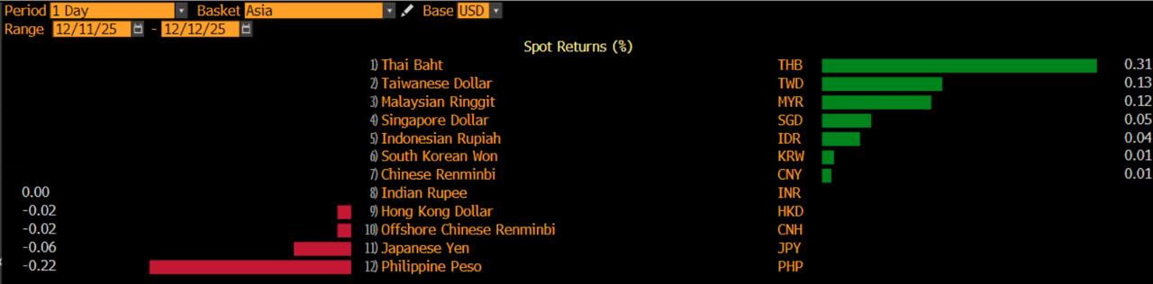 Meski begitu, rupiah tetap berada di zona hijau bersama beberapa mata uang Asia lainnya. Penguatan hari ini dipimpin oleh baht Thailand sebesar 0,31%, disusul dolar Taiwan 0,13%, ringgit Malaysia 0,12%, dolar Singapura 0,05%, dan rupiah Indonesia di posisi keempat.