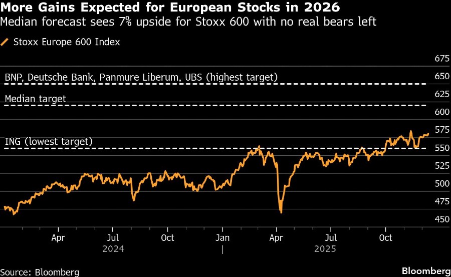 Para forecasters juga secara umum optimis terhadap Eropa, dengan tidak ada satu pun dari 17 strategis yang disurvei oleh Bloomberg yang memperkirakan penurunan besar. Empat strategis, termasuk dari UBS Group AG dan Deutsche Bank AG, memperkirakan kenaikan hampir 13% dari penutupan Rabu.