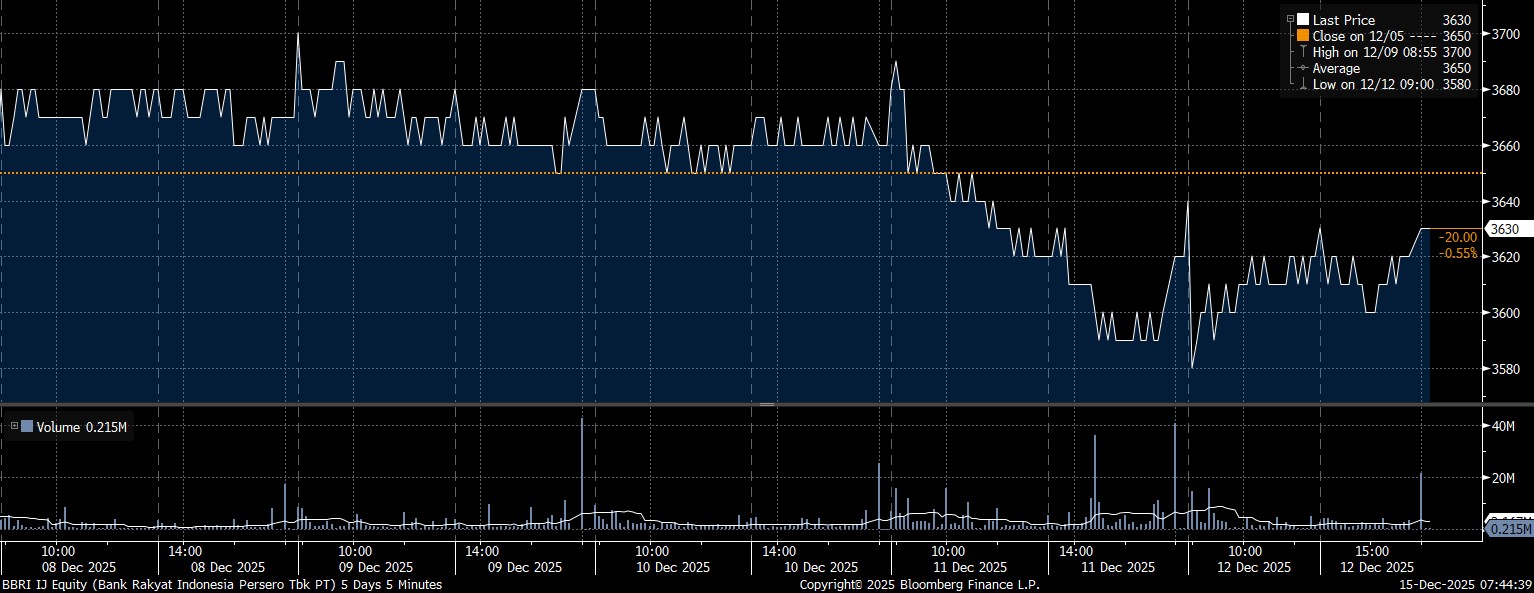 Pada kesempatan yang sama, investor asing mencatat net sell tertinggi pada saham PT Bank Rakyat Indonesia Tbk (BBRI) mencapai Rp1,04 triliun. Imbas tekanan jual yang masif, saham BBRI melemah 0,55% mencapai posisi Rp3.630/saham.