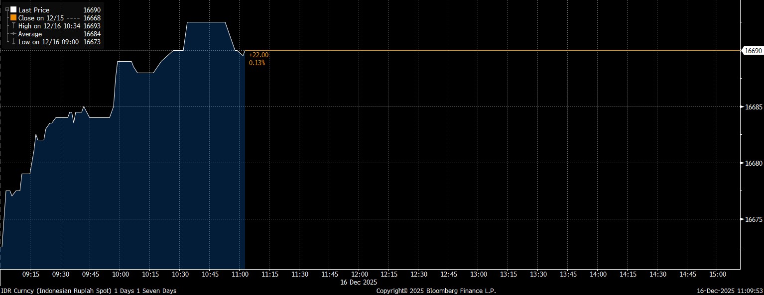 Mengacu data Bloomberg, rupiah melemah 0,13% di pasar spot menyentuh Rp16.691/US$. Pada pembukaan perdagangan pagi tadi, rupiah dibuka melemah Rp16.678/US$.