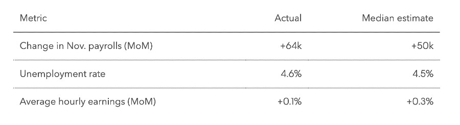 Bloomberg, Pertumbuhan lapangan kerja di AS tetap lambat pada November dan tingkat pengangguran meningkat. Hal ini menunjukkan pendinginan pasar tenaga kerja berlanjut setelah Oktober sangat lemah.
