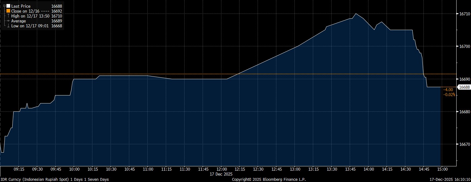 Rupiah sebelumnya sempat terbenam hingga tembus level Rp16.710/US$ saat taklimat media pengumuman hasil Rapat Dewan Gubernur (RDG) BI belum diumumkan.