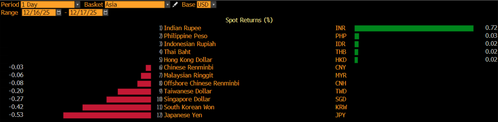 Biarpun berhasil berbalik dari posisi pelemahan, rupiah masih menjadi valuta Asia dengan penguatan nilai paling sedikit, paling minimal siang ini dengan penguatan hanya 0,02% point–to–point.