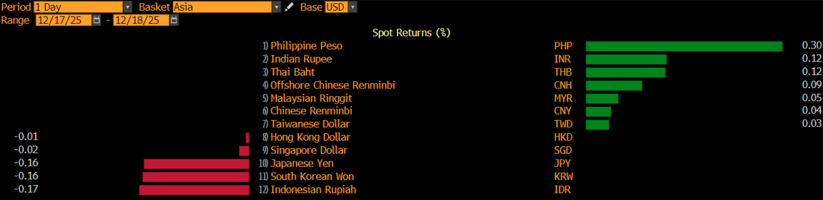 Jauh lebih baik dari pesaingnya, peso Filipina, rupee India, baht Thailand, yuan offshore, ringgit Malaysia, yuan China dan dolar TA berhasil menguat menandingi dolar AS, dengan masing–masing terapresiasi 0,3%, 0,13%, 0,11%, 0,08%, 0,05%, 0,04%, dan 0,03%.