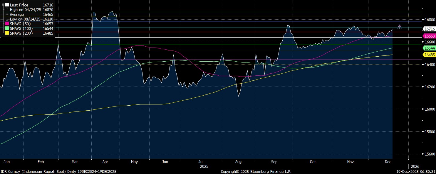Secara teknikal dengan perspektif harian (time frame daily) nilai rupiah berpotensi lanjut melemah, dibayangi sentimen yang menekan, dengan target pelemahan menuju level Rp16.740/US$ yang merupakan support pertama dengan target pelemahan kedua akan tertahan di Rp16.750/US$.