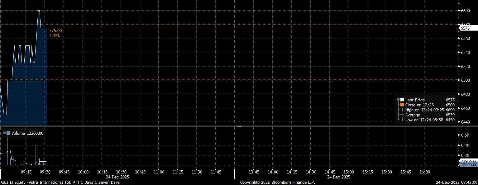 Pada pembukaan perdagangan Sesi I pagi hari ini, Rabu (24/12/2025), saham–saham otomotif dan penunjangnya seraya hijau cerah, yang melaju bersamaan dengan menguatnya Indeks Harga Saham Gabungan (IHSG).