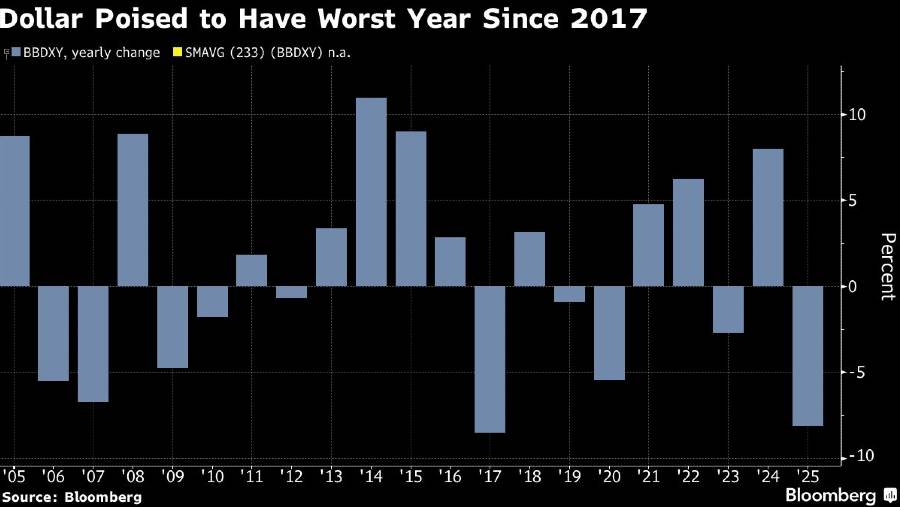 Bloomberg, Dolar AS sedang menuju kinerja tahunan terburuk dalam delapan tahun terakhir. Pasar opsi memberi sinyal bahwa pelaku pasar bersiap menghadapi pelemahan dolar lebih lanjut pada sesi-sesi terakhir 2025 dan seterusnya.