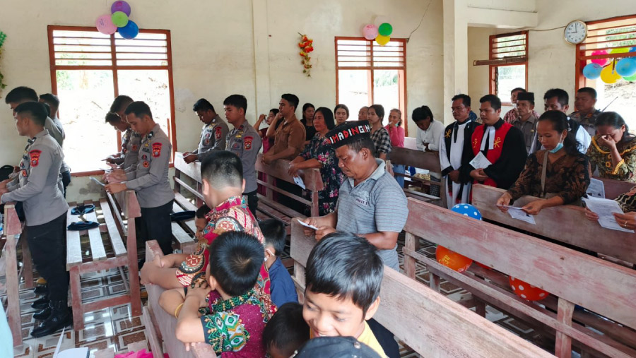 Sebagai bagian dari peningkatan kehadiran negara, Polri turut melaksanakan ibadah bersama di Gereja HKBP Huta Godang dan Gereja GKPA Aek Ngadol.