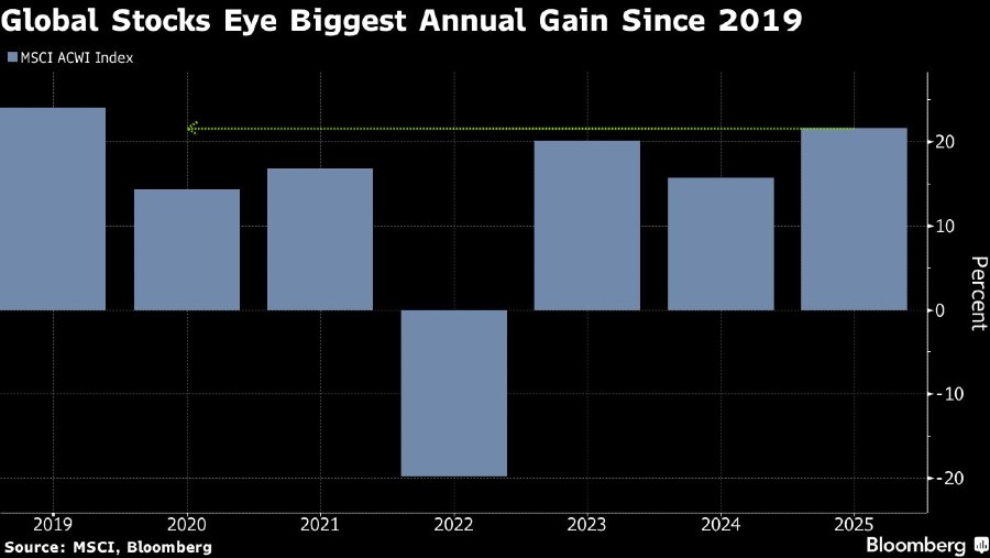 Sejumlah investor optimis pasar menaruh harapan mereka pada apa yang dikenal sebagai “Santa Claus Rally” guna mendorong harga saham mencapai rekor baru, meskipun euforia seputar AI)dan jalur suku bunga bank sentral AS atau Federal Reserve mulai dipertanyakan. Reli yang terjadi ini secara tradisional terjadi pada lima sesi perdagangan terakhir tahun ini dan dua sesi pertama tahun baru.