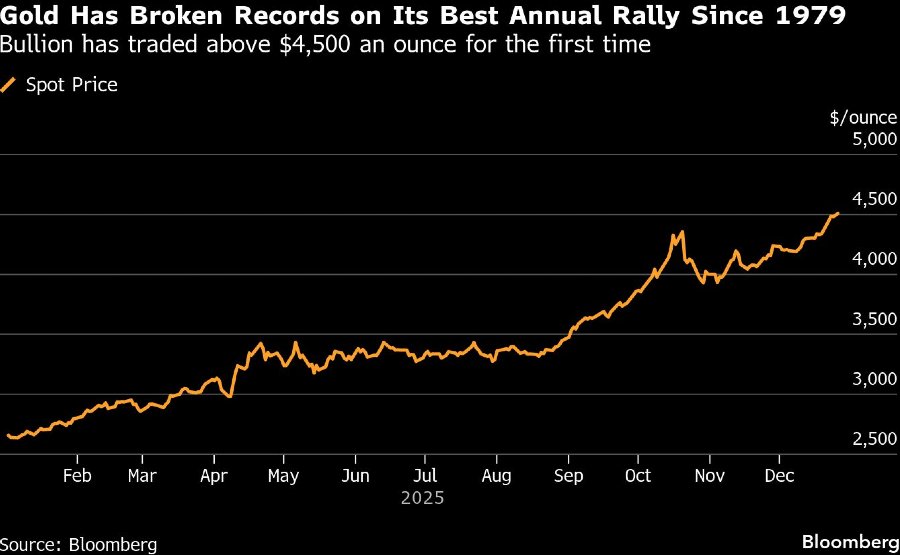 Bloomberg, Emas, perak, dan platinum melonjak ke level tertinggi sepanjang masa, memperpanjang reli akhir tahun yang bersejarah bagi logam mulia, didukung oleh meningkatnya ketegangan geopolitik dan melemahnya dolar AS.