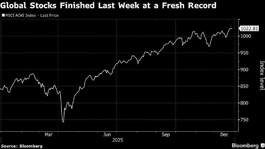 Indeks saham global MSCI telah naik lebih dari 20% pada 2025 meskipun melemah pada Senin, menuju kenaikan tahunan ketiga berturut-turut. Tren teknologi artificial intelligence (AI) serta arah suku bunga The Fed dianggap oleh investor sebagai dua faktor paling krusial yang akan menentukan kinerja saham pada 2026.