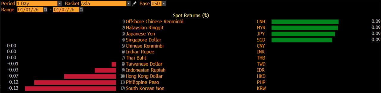 Penguatan indeks dolar AS membuat sejumlah mata uang di pasar Asia terseret ke zona merah. Won Korea Selatan melemah 0,13%, peso Filipina 0,12%, dolar Hong Kong 0,07%, rupiah di posisi keempat melemah 0,03% dan dolar Taiwan 0,01%.