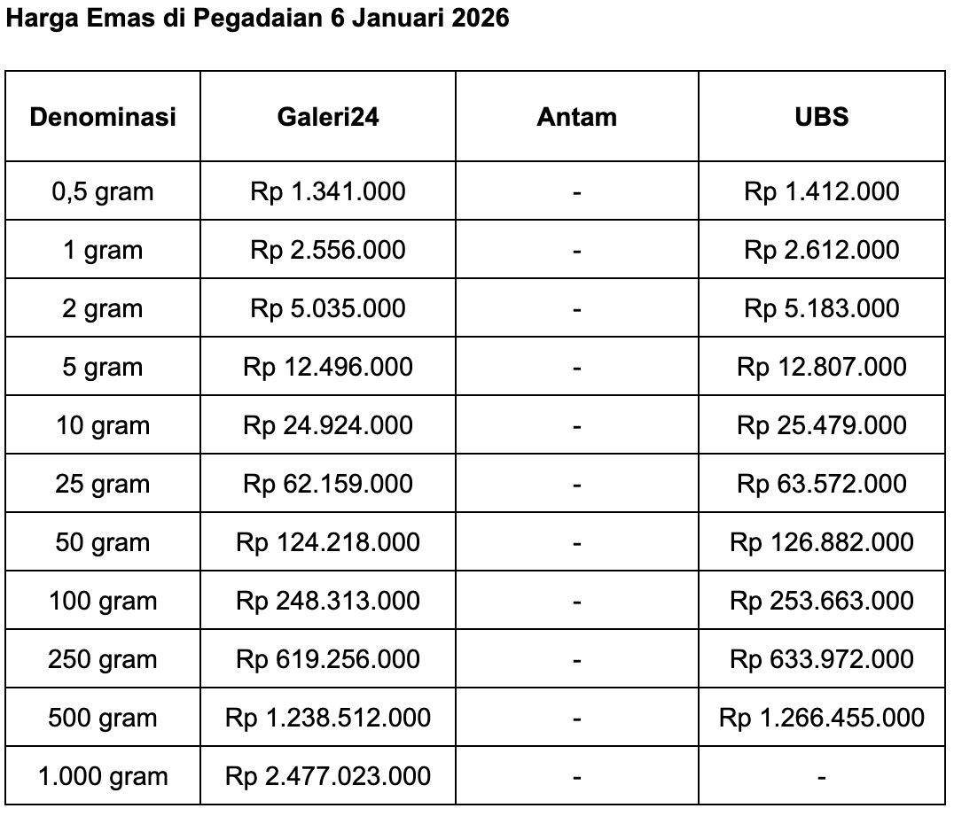 Pegadaian adalah salah satu anak usaha PT Bank Rakyat Indonesia (Persero) Tbk (BBRI). Berikut perkembangan harga emas di Pegadaian selengkapnya, seperti dilansir situs Sahabat Pegadaian: