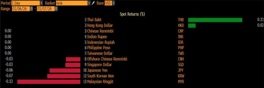 Zona merah kali ini dipimpin oleh ringgit Malaysia yang terdepresiasi 0,13%, disusul won Korea Selatan 0,07%, yen Jepang 0,06% dan dolar Singapura 0,03%. Sementara dari zona hijau hanya ada baht Thailand yang teraprediasi 0,11% dan dolar Hong Kong menguat tipis 0,02%.