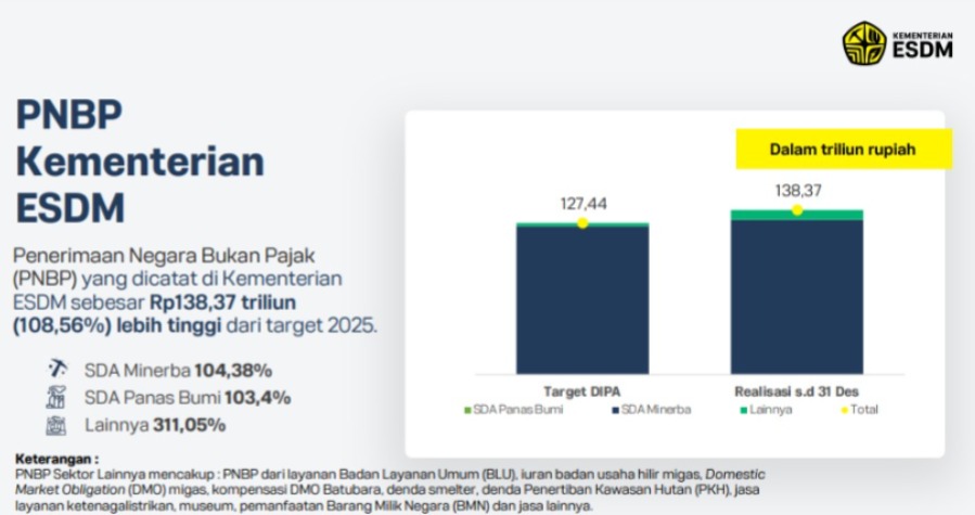 PNBP Minerba 2025 Capai Rp138,37 T, Migas di Bawah Target