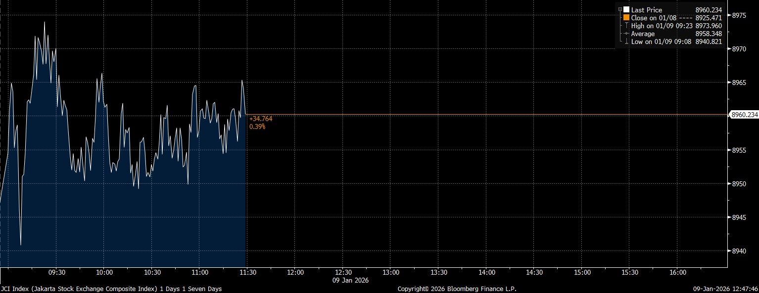 Bloomberg Technoz, Jakarta - Indeks Harga Saham Gabungan (IHSG) terus dekati rekor tertinggi baru All Time High (ATH). Pada Jumat (9/1/2026), IHSG menutup perdagangan Sesi I dengan kenaikan 0,39% di posisi 8.960.