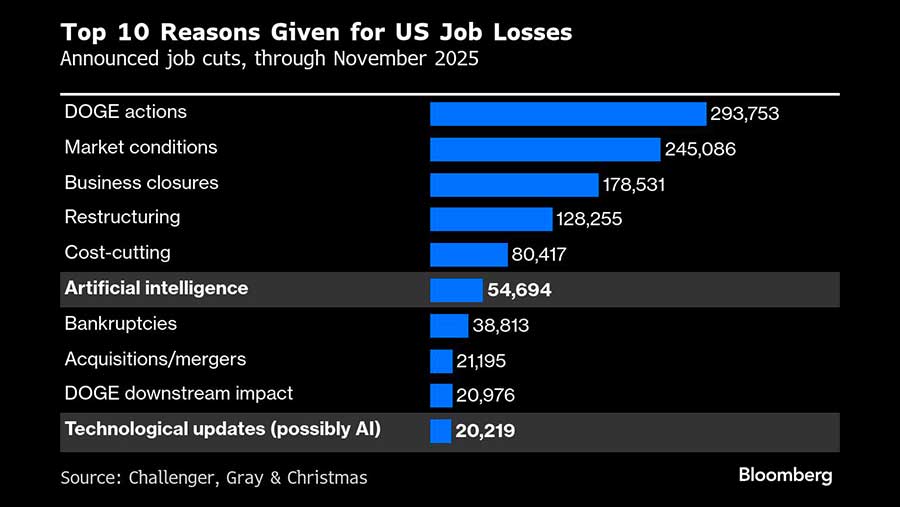 AI menjadi salah satu alasan utama pemangkasan tenaga kerja, dengan teknologi ini disalahkan atas puluhan ribu pemutusan hubungan kerja lebih banyak tahun lalu dibandingkan dengan kebangkrutan.