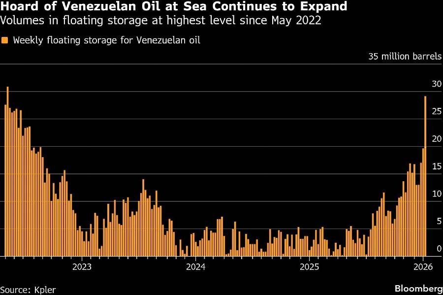 Bloomberg, Volume minyak mentah Venezuela yang terombang-ambing di laut melonjak ke level tertinggi dalam lebih dari tiga tahun setelah AS menangkap pemimpin negara itu, Nicolas Maduro, dan mengklaim kendali atas sumber daya energinya.