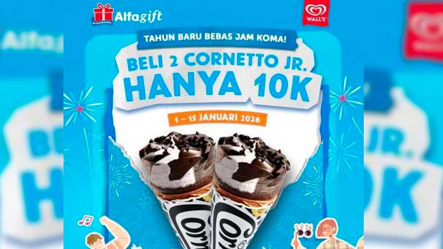 Cornetto Jr. dikenal sebagai es krim cone dengan ukuran pas dan rasa manis yang disukai anak-anak maupun orang dewasa. Promo ini berlaku hingga 15 Januari 2026, sehingga masih ada waktu untuk menikmati kesegarannya.