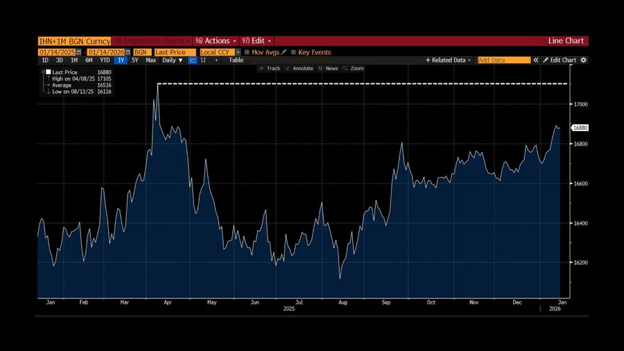 Pada perdagangan Non-Deliverable Forward (NDF) hari ini (14/1/2026), nilai kontrak rupiah kembali turun dan dihargai Rp16.876/US$. Rupiah NDF tergerus 0,1% dari penutupan perdagangan kemarin yang sempat menguat 0,09% di level Rp16.874/US$ dari posisi pembukaan Rp16.884/US$.
