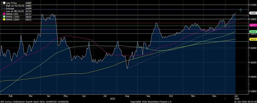 Hari ini rupiah mungkin belum diperdagangkan di pasar spot karena pasar keuangan Indonesia tutup memperingati Isra Mi'raj. Pasar spot kembali buka pada Senin (19/1/2026).