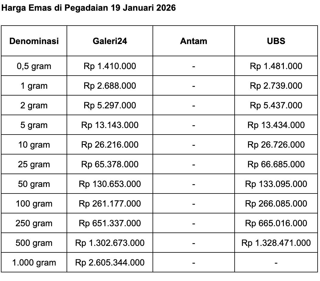 Pegadaian adalah salah satu anak usaha PT Bank Rakyat Indonesia (Persero) Tbk (BBRI). Berikut perkembangan harga emas di Pegadaian selengkapnya, seperti dilansir situs Sahabat Pegadaian: