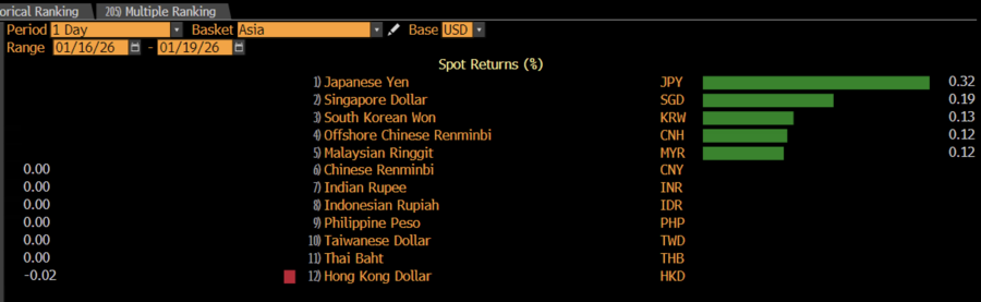 Di pasar Asia, nilai tukar mata uang bergerak beragam. Mayoritas pasar yang sudah dibuka bergerak menguat. Seperti yen Jepang menguat 0,32%, dolar Singapura 0,19%, offshore renminbi China 0,12%, ringgit Malaysia 0,12%, dan won Korea Selatan 0,13%. Sementara, hanya dolar Hong Kong yang tergerus tipis 0,02%.