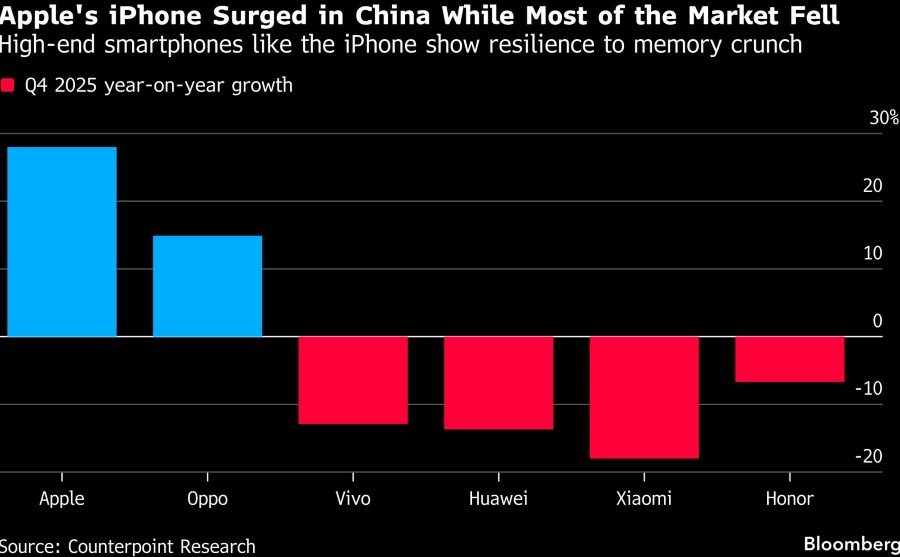 Apple, yang seluruh lini produknya berada di segmen atas pasar, menunjukkan ketahanan yang paling besar. Namun, putaran baru subsidi konsumen China membantu meredakan tekanan biaya bagi produsen, kata Counterpoint.