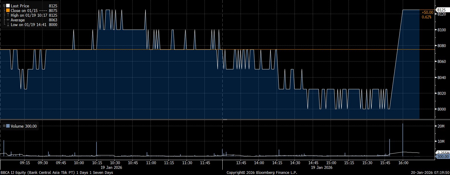 Adapun investor asing net sell yang masif pada saham PT Bank Central Asia Tbk (BBCA) mencapai Rp444,7 miliar. Solid bertahan dari manuver jual, saham BBCA tetap berhasil menguat 0,62% dan ditutup di posisi Rp8.125/saham.