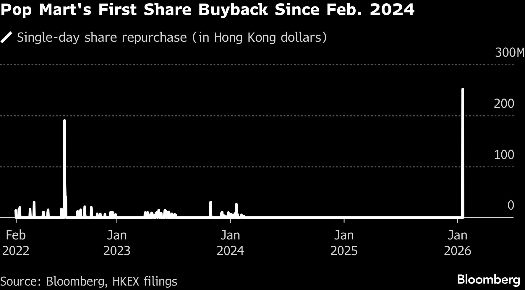 Saham yang tercatat di Hong Kong tersebut melonjak hingga 10% pada perdagangan awal Selasa, kenaikan terbesar sejak 20 Agustus. Perusahaan mengumumkan dalam keterbukaan informasi bahwa mereka membeli kembali 1,4 juta saham pada 19 Januari dengan nilai HK$251 juta (US$32 juta). Pembelian kembali terakhir dilakukan pada Februari 2024, menurut data yang dihimpun Bloomberg.