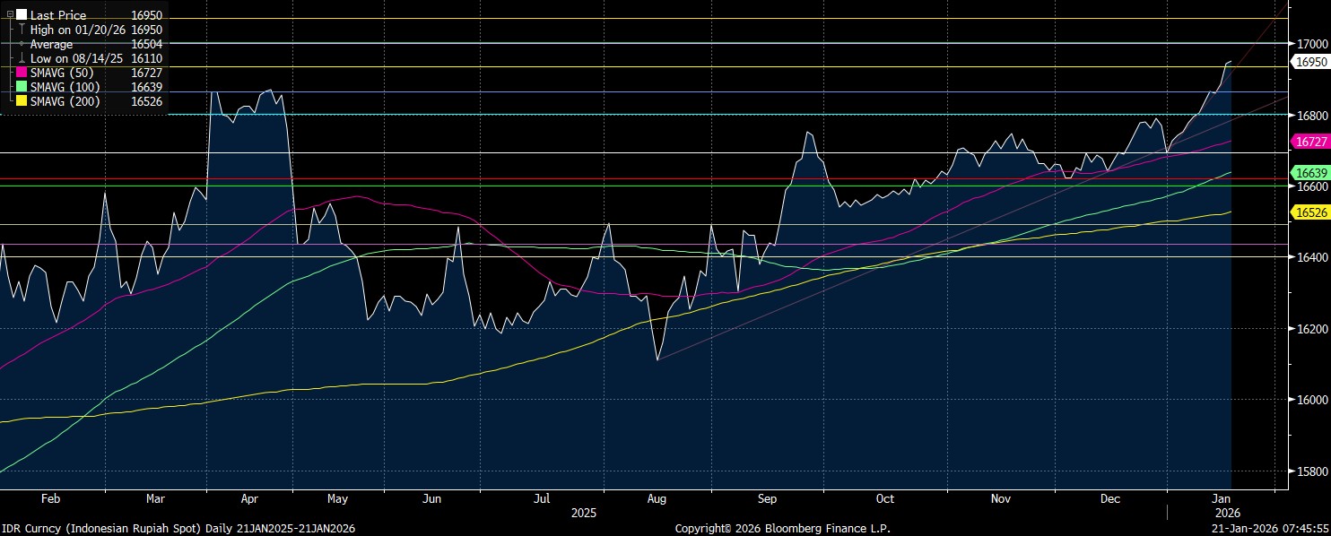Pergerakan rupiah NDF offshore kali ini lebih kuat dibanding level penutupan rupiah spot kemarin di Rp16.950/US$ yang menjadi posisi terlemah dalam sejarah rupiah.