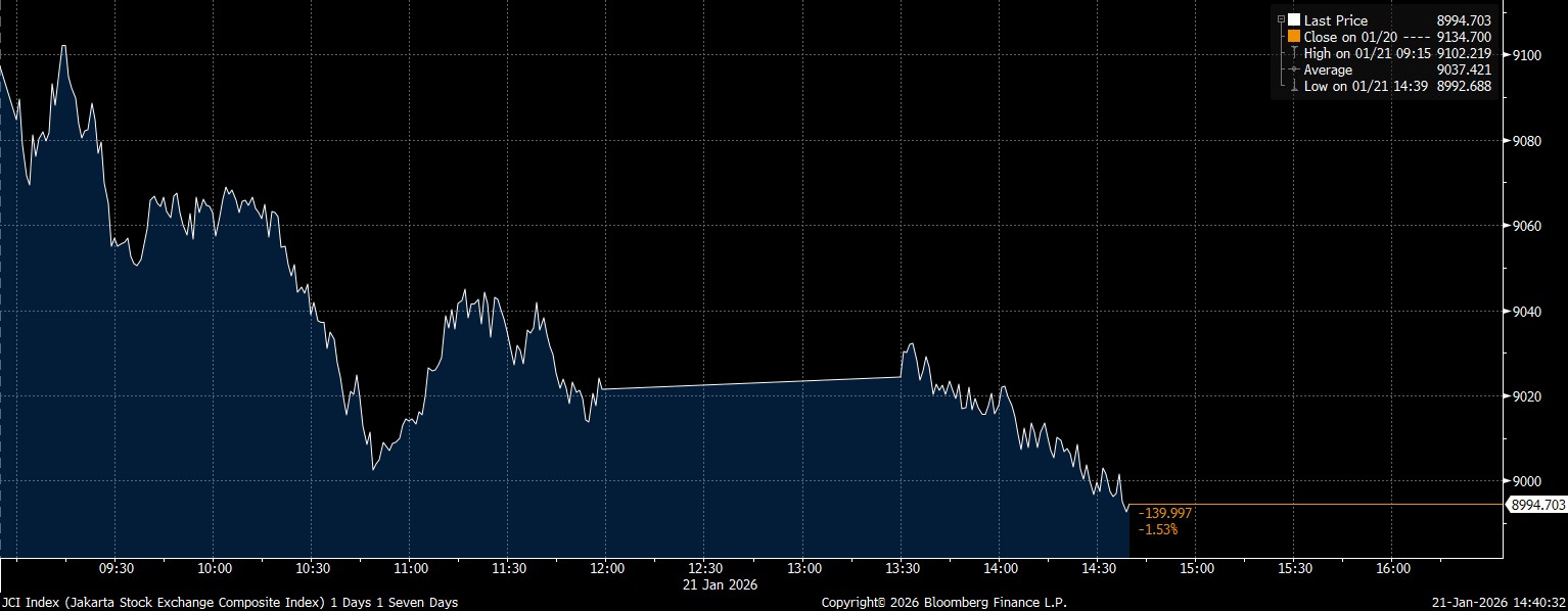 Amblesnya keempat saham bank besar tersebut menyeret Indeks Harga Saham Gabungan hingga terbenam dalam di zona merah. Hingga Sesi II perdagangan saham Rabu (211/2026), IHSG melemah tajam dengan kehilangan 1,53% ke level 8.994.