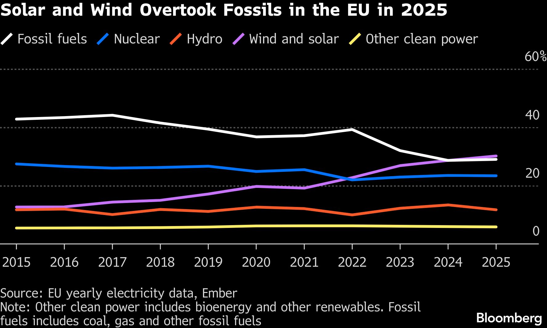 Produksi listrik tenaga surya melonjak lebih dari 20% untuk tahun keempat berturut-turut. Secara keseluruhan, energi terbarukan menyumbang 48% dari total listrik yang dihasilkan di Uni Eropa pada 2025.