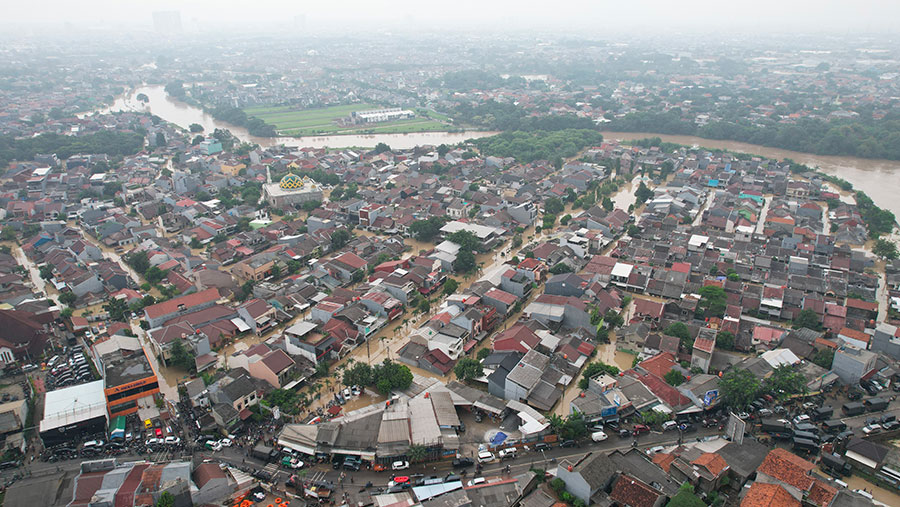 Bloomberg Technoz, Jakarta - Curah hujan dengan intensitas tinggi yang mengguyur wilayah Bekasi dan sekitarnya dalam beberapa hari terakhir menyebabkan banjir di sejumlah titik. Kondisi ini berdampak langsung pada aktivitas warga, terutama di kawasan permukiman dan ruas jalan utama yang terendam genangan air cukup tinggi.