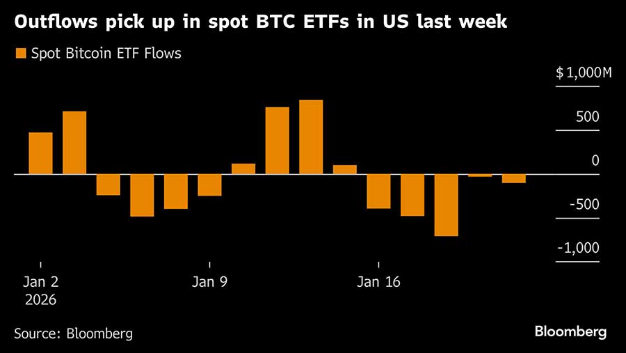 Instrumen dana yang diperdagangan (ETF) Bitcoin spot mengalami arus keluar lima hari berturut-turut dengan total sebesar US$1,7 miliar di AS pekan lalu, hampir menghapus arus masuk empat hari sebelumnya, menurut data yang dihimpun Bloomberg.