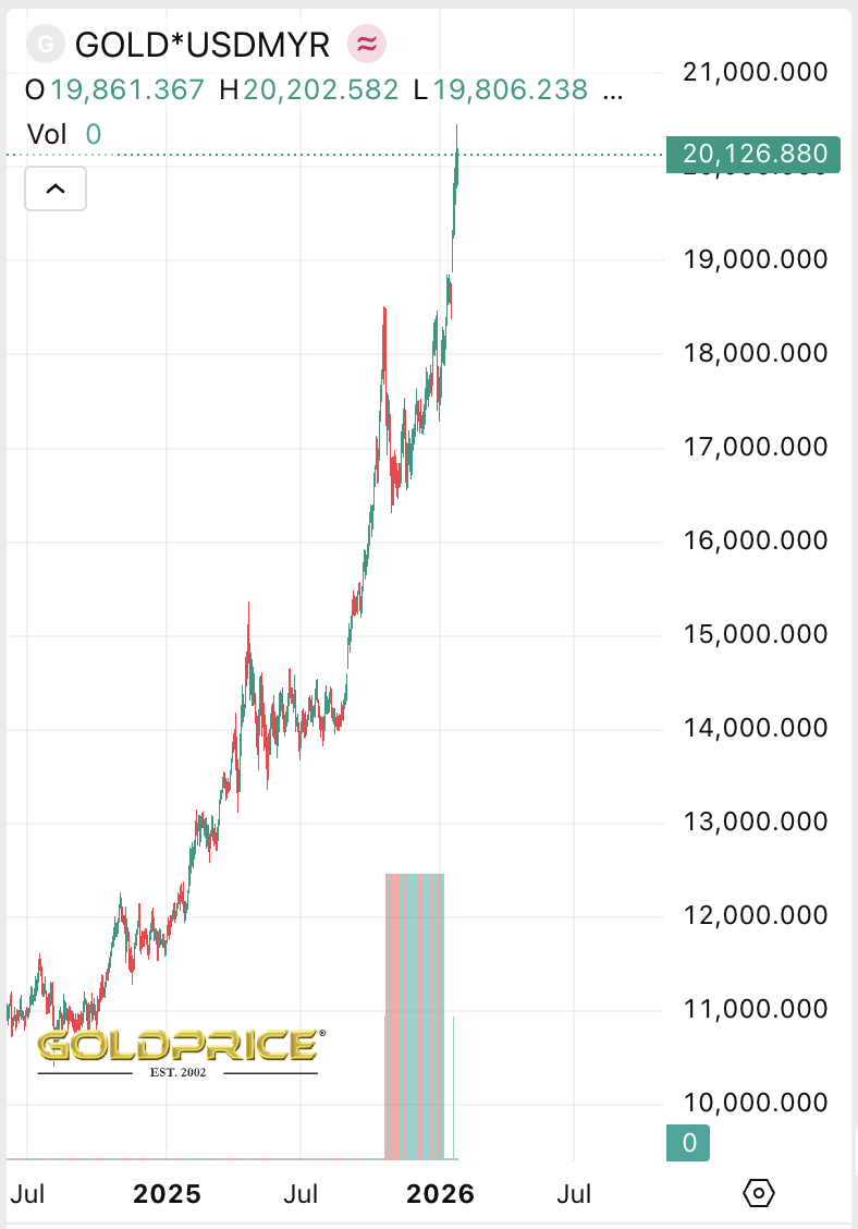 Dalam sebulan terakhir, harga emas di Negeri Harimau Malaya melonjak 14,75%. Selama setahun ke belakang, harga melesat 66,27%.