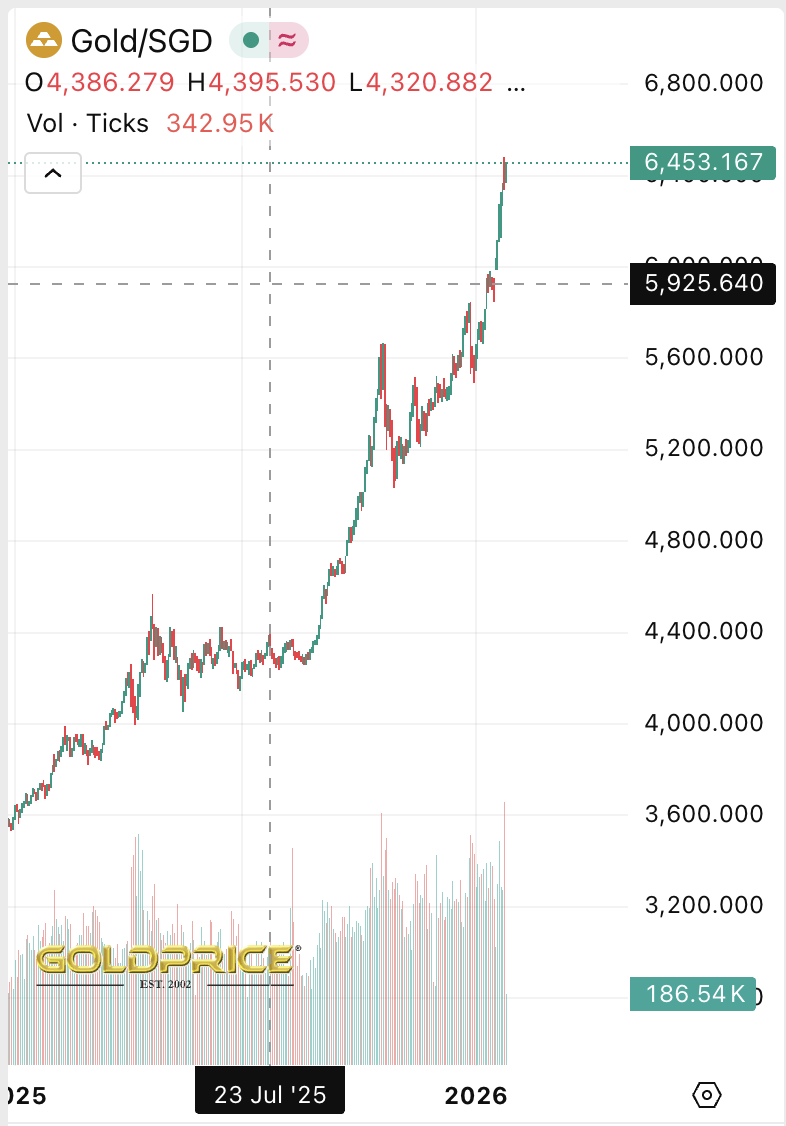 Kemudian di Singapura, harga emas di tingkat ritel hari ini adalah SG$ 6.456,15/ons. Jadi harga emas di Negeri Singa adalah sekitar Rp 2,71/gram.