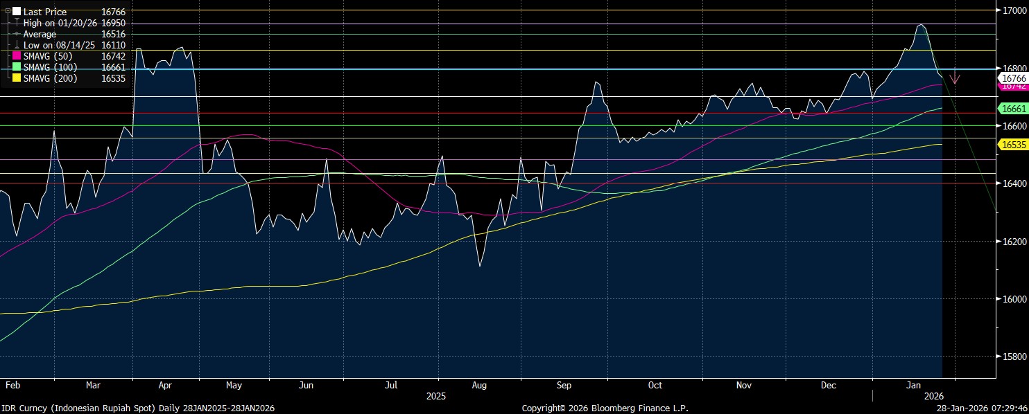 Sebaliknya, rupiah memiliki level support terdekat di level Rp16.800/US$. Apabila level ini berhasil tembus, maka mengonfirmasi support selanjutnya di level Rp16.860/US$ yang merupakan support psikologis.