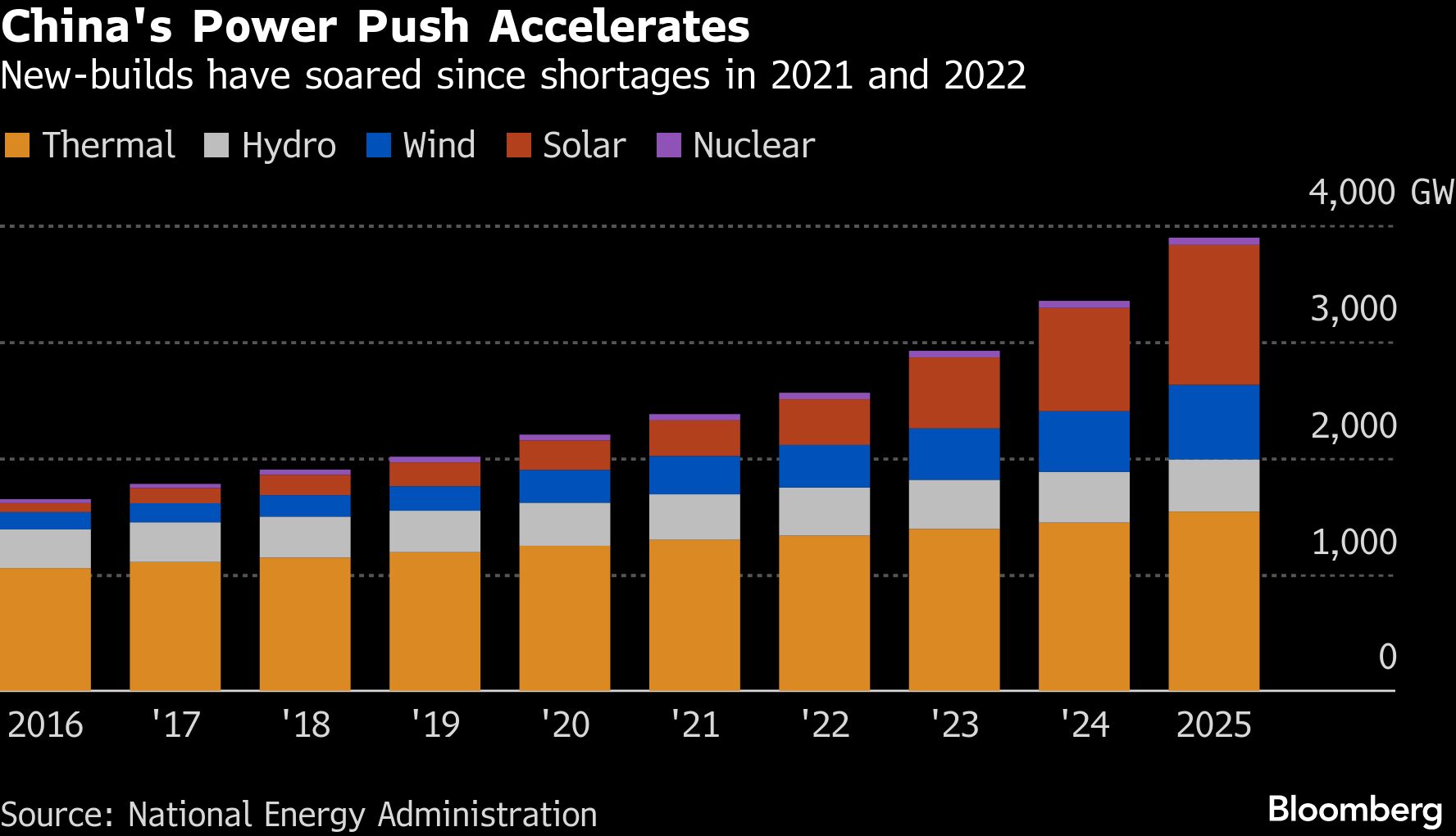 Sejak 2023, penambahan kapasitas rata-rata lebih dari 400 gigawatt per tahun, dibandingkan sekitar 150 gigawatt per tahun selama enam tahun sebelumnya.