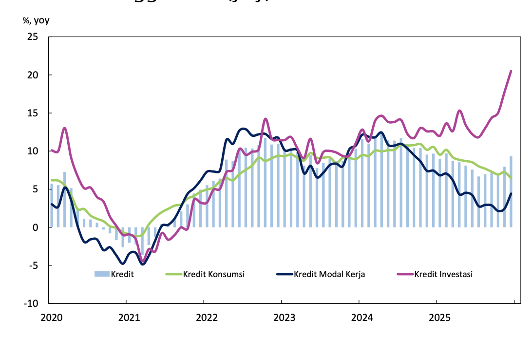 Kemudian Kredit Konsumsi (KK) pada Desember 2024 tumbuh 9,8% yoy. Bulan lalu, pertumbuhannya tinggal 6,4% yoy.