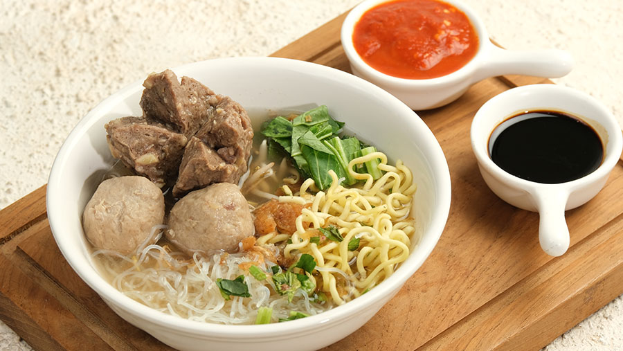 Kuah bakso Malang dikenal kaya rasa karena menggunakan tulang sapi dan aneka sayuran rebus.
