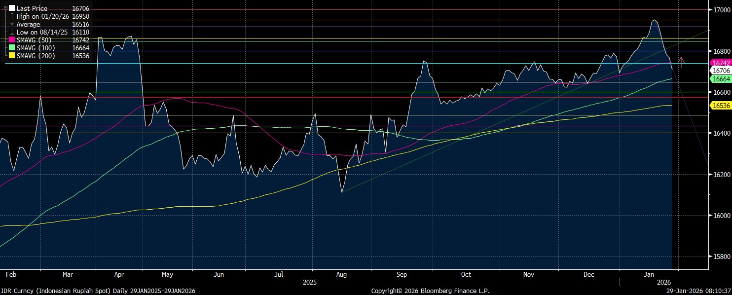 Namun apabila rupiah bisa menguat, maka resistance yang menarik untuk dicermati ada di kisaran Rp16.700-16.680/US$. Resistance potensial ada di level Rp16.600/US$.