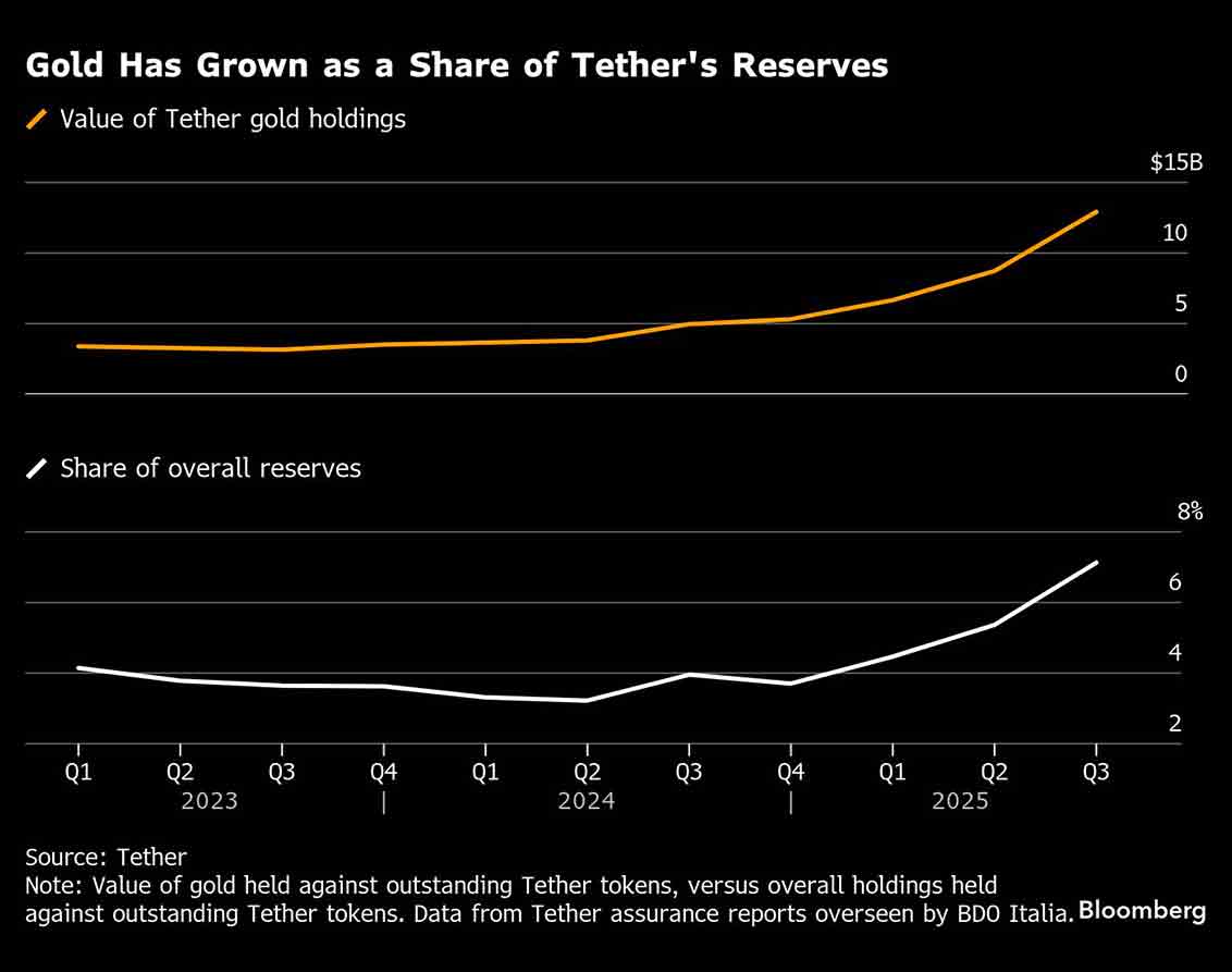 Perusahaan tersebut telah mempercepat pembelian emasnya secara signifikan, mengakuisisi lebih dari 70 ton emas sepanjang tahun lalu untuk cadangan dan stablecoin emasnya, menurut perhitungan Bloomberg.