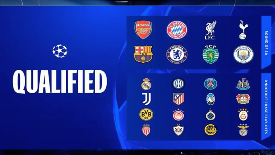 Berikut delapan tim yang memastikan tempat di babak 16 besar setelah fase liga berakhir pada Matchday 8: