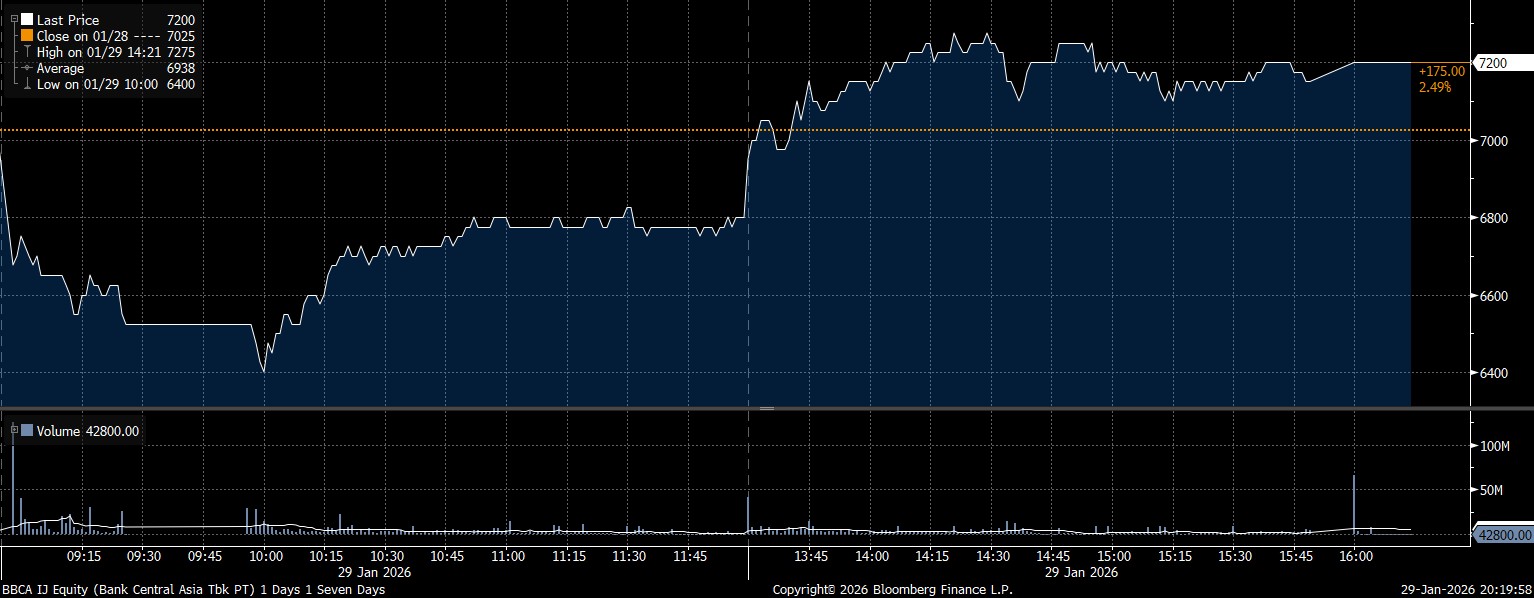 Adapun investor asing net sell yang deras terhadap saham PT Bank Central Asia Tbk (BBCA) yang nilainya mencapai Rp2,05 triliun. Berseberangan jauh dengan dominasi jual, saham BBCA tetap berhasil menguat 2,49% hingga melesat di posisi Rp7.200/saham.