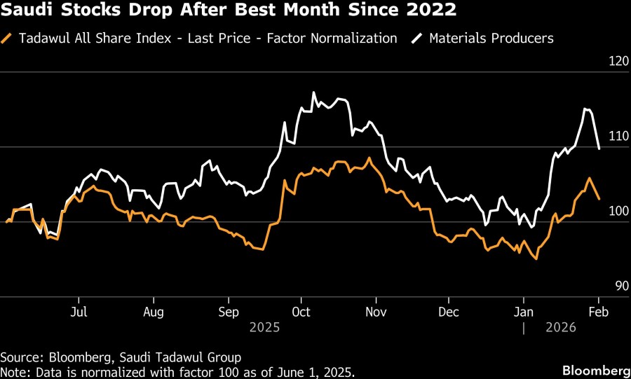 “Penurunan harga di Saudi dapat karena faktor geopolitik serta aksi ambil untung,” kata Junaid Ansari, Kepala Riset dan Strategi di Kamco Investment Co. “Saham pertambangan juga turun akibat anjloknya harga emas.”