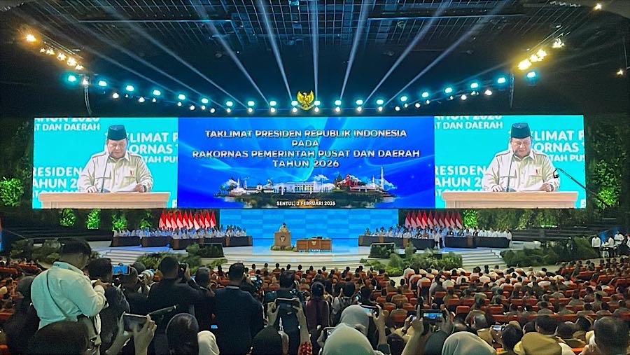 Bloomberg Technoz, Jakarta - Presiden RI Prabowo Subianto mengingatkan seluruh jajaran pemerintah pusat dan daerah agar tidak menjadi pemimpin yang “lugu” dalam menghadapi dinamika global dan geopolitik. Hal itu disampaikan Prabowo dalam Taklimat Presiden pada Rakornas Pemerintah Pusat dan Daerah Tahun 2026 di Bogor, Jawa Barat, Senin (2/2/2026).