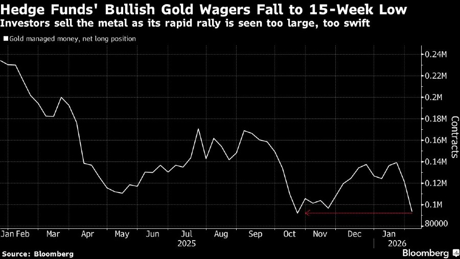 Hedge fund dan spekulan besar lainnya mengurangi posisi net-long mereka sebesar 23% menjadi 93.438 kontrak untuk pekan yang berakhir pada 3 Februari.