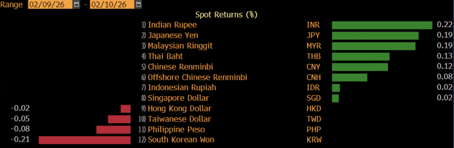 Dari pasar Asia, kinerja rupiah cenderung tertinggal dari mata uang Benua Kuning lainnya. Rupee India India, yen Jepang, ringgit Malaysia, dan baht Thailand mencatatkan penguatan yang lebih solid dalam rentang perdagangan yang sama.